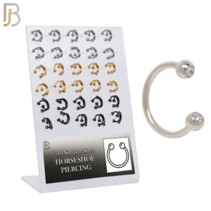 PK-HS05 – 316L Surgical Steel Horseshoe with Double Gem Ball Externally Threaded Pack of 30 Pairs