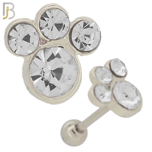 TB71 – 316L Stainless Steel Paw Print with CZ Gems Tragus/Cartilage Barbell (PACK OF 6)
