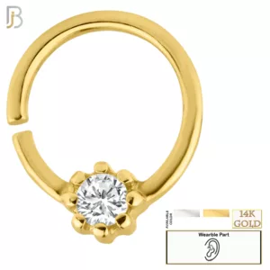 14-TH03 – 14K Solid Gold Single CZ Tragus Hoop