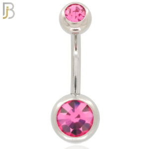 NB01SP – 316L Stainless Steel Double Gem Bezel Set Rose Zircon Plain Banana Belly Navel Ring (PACK OF 6)