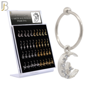 PK-HX03M – 316L Surgical Steel Different Dangling Designs Helix Hoop Piercing with Zircon