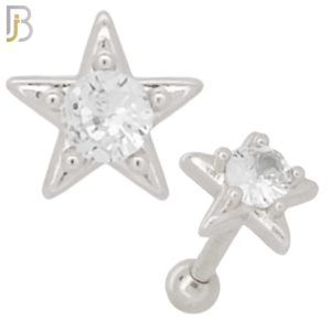 TB60 – 316L Stainless Steel Star with Clear Center Zircon Tragus Barbell Cartilage Piercing Screw Ball Externally Threaded (PACK OF 6)