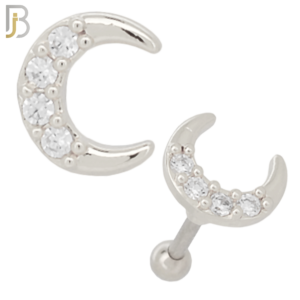 TB61 – 316L Stainless Steel Crescent Moon with Four Clear Round Zircon Tragus Barbell Cartilage Piercing Screw Ball Externally Threaded (PACK OF 6)