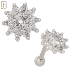 TB62 – 316L Stainless Steel Flower with Multi Zircon Tragus Barbell Cartilage Piercing Screw Ball Externally Threaded (PACK OF 6)