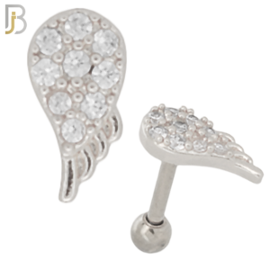 TB66 – 316L Stainless Steel Angel Wing with Zircon Tragus Barbell Cartilage Piercing Screw Ball Externally Threaded (PACK OF 6)