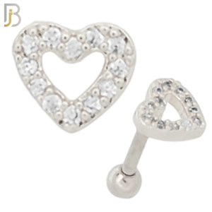 TB67 – 316L Stainless Steel Hollow Heart with Multi Zircon Tragus Barbell Cartilage Piercing Screw Ball Externally Threaded (PACK OF 6)