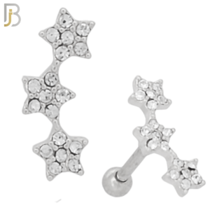 TB68 – 316L Stainless Steel Triple Stars with Multi Zircon Tragus Barbell Cartilage Piercing Screw Ball Externally Threaded (PACK OF 6)
