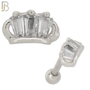 TB69 – 316L Stainless Steel Crown with Three Baguette Tragus Barbell Cartilage Piercing Screw Ball Externally Threaded (PACK OF 6)