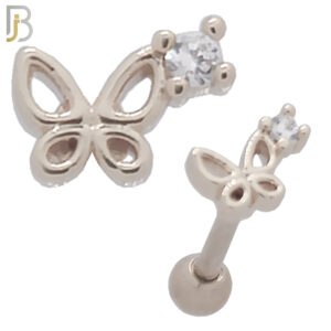 TB39 – 316L Stainless Steel and Brass Butterfly with Small Round Zircon Design Tragus Barbell Cartilage Piercing Screw Ball (PACK OF 6)
