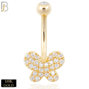 10-NB19 – 10k Solid Gold Banana Belly Ring with 8mm Butterfly Design