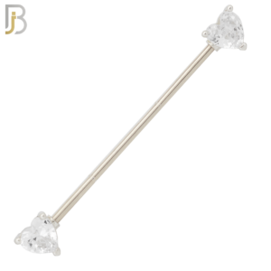 BB48 – 316L Surgical Steel Heart Shaped CZ Externally Threaded Industrial Barbell (PACK OF 6)