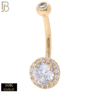 10-NB11 – 10k Solid Gold Banana Belly Ring with Round CZ Design
