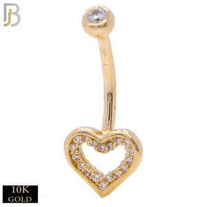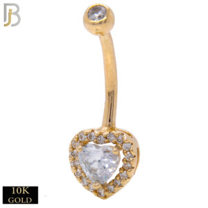 10-NB24 – 10k Solid Gold Banana Belly Ring with Heart Design with CZ
