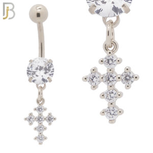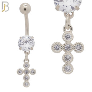 N047 – 316L Stainless Steel Dangling Cross Bezel with Zircon Design Belly Ring with 5mm Screw Ball