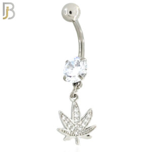 N045 – 316L Stainless Steel Dangling Marijuana Leaf with Zircon Design Belly Ring with 5mm Screw Ball