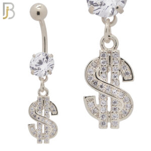 N046 – 316L Stainless Steel Dangling Dollar Sign with Zircon Design Belly Ring with 5mm Screw Ball