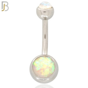 NB14 – 316L Stainless Steel Opal Bezel Design Banana Belly Navel Ring