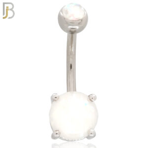 NB15 – 316L Stainless Steel Prong Setting Opal Design Banana Belly Navel Ring