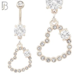 N038 – 316L Stainless Steel Dangling Hollow Heart Bezel with Single Prong  Zircon Design Belly Ring with 4mm Screw Ball