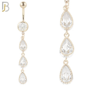 N040 – 316L Stainless Steel Dangling Triple Teardrop Zircon Design Belly Ring with 4mm Screw Ball