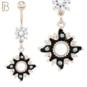 N044 – 316L Stainless Steel Dangling Flower Design Belly Ring with 4mm Screw Ball