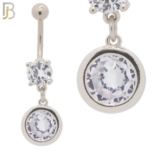 N043 – 316L Stainless Steel Dangling Bezel Round Design Belly Ring with 4mm Screw Ball