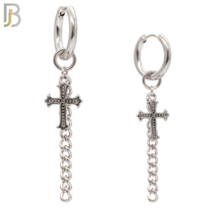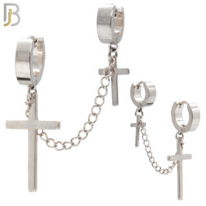 ES286 – 316L Stainless Steel Cross & Long Chain Dangle Drop Hoop Huggies Earrings