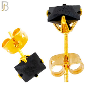 ES05-GK – 316L Stainless Steel Gold Plated Stamping Princess Cut Square Prong Setting with Black Zircon