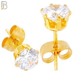 ES04-GC – 316L Stainless Steel Gold Plated Stamping Round Prong Setting with Clear Zircon