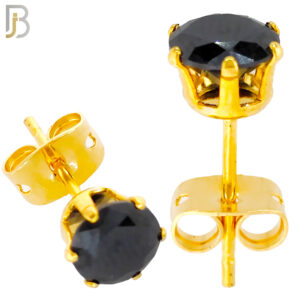 ES04-GK – 316L Stainless Steel Gold Plated Stamping Round Prong Setting with Black Zircon