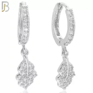 ES105 – 316L Stainless Steel Dangling Leaf with Zircon Huggies Clip On