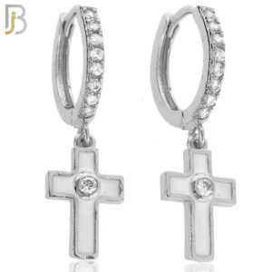 ES106 – 316L Stainless Steel Dangling Cross Enamel with Zircon Huggies Clip On