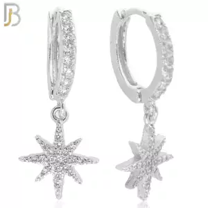 ES107 – 316L Stainless Steel Dangling Moravian Star with Zircon Huggies Clip On