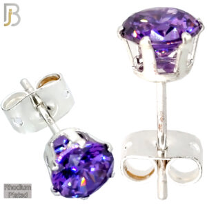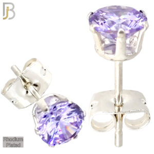 ES04R-SLV – 316L Stainless Steel Rhodium Plated Stamping Round Prong Setting with Lavender Zircon (June Birthstone)
