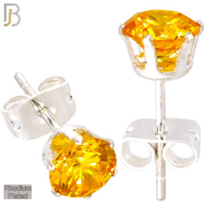 ES04R-SGY – 316L Stainless Steel Rhodium Plated Stamping Round Prong Setting with Golden Yellow Zircon (November Birthstone)