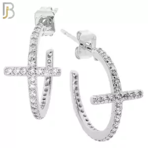 ES51 – 316L Stainless Steel Dangling Cross Zircon Design Huggies Clip On