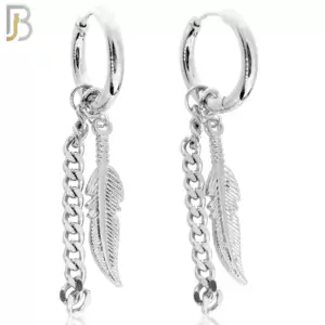 ES50 – 316L Stainless Steel Dangling Feather with Chain Design Huggies Clip On