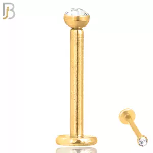 LB07G – 316L Surgical Steel Gold Plated Bar Press Fit Zircon Bezel Monroe Labret Screw Internally Threaded Flat Back (PACK OF 6)