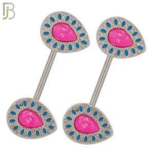 NP11 – 316L Surgical Steel Screw Teardrop Opal with Oval Enamel Nipple Ring Piercing
