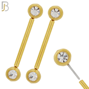 NP16G – 316L Surgical Steel Gold Plated Push In Round Bezel Zircon Nipple Ring Piercing