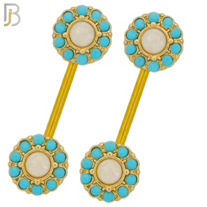 NP13 – 316L Surgical Steel Screw Round Opal with Stone Nipple Ring Piercing