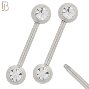 NP01-6 – 316L Surgical Steel Screw 6mm Plain Ball with Bezel Zircon Nipple Ring Piercing
