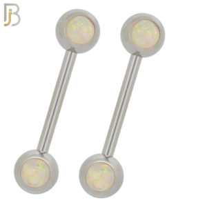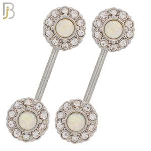 NP15 – 316L Surgical Steel Screw Round Bezel Opal Nipple Ring Piercing