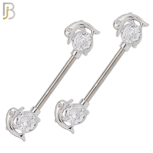 NP48 – 316L Surgical Steel Round Prong Set Zircon with Dolphin Design Nipple Rings Pair