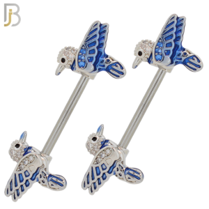 NP56 – 316L Surgical Steel Blue Bird Design Nipple Rings Pair Externally Threaded