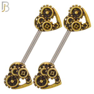 NP58- 316L Surgical Steel Steampunk Antique Gold Externally Threaded Nipple Rings (Sold as Pair)