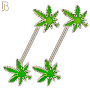 NP61- 316L Surgical Steel Marijuana Leaf Design Externally Threaded Nipple Rings (Sold as Pair)