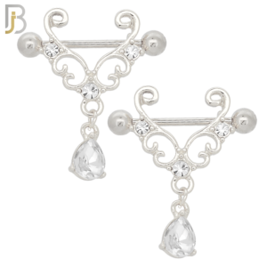 NP40 – 316L Surgical Steel Screw Shield Barbell with Alloy Tribal with Teardrop Dangling CZ Design Pair