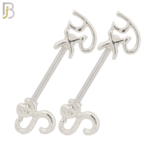 NP41 – 316L Surgical Steel Screw with Alloy Sexy Writing Design Nipple Ring Piercing Pair