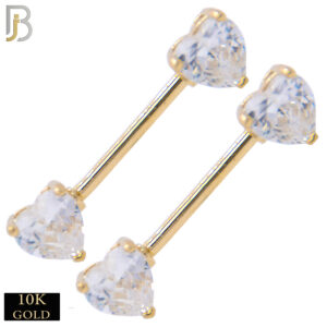 10-NP03 – 10K Solid Gold Externally Threaded Straight Barbell Set with Heart Shaped CZ in Prong Setting